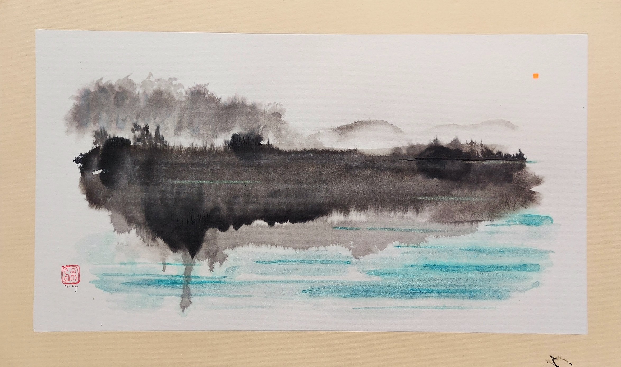 • Chất liệu: Mực, màu nước trên giấy Xuyến.